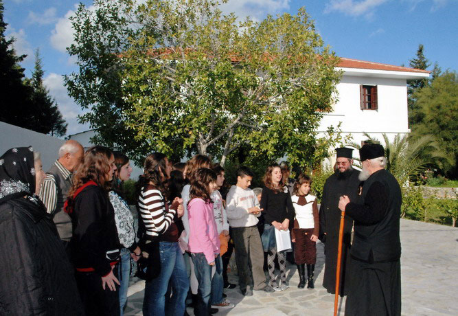 Στιγμιότυπα από επίσκεψη του πατρός Αθανασίου Μισσού μετά του ποιμνίου του, στην Ιερά Μονή Παναγίας Παραμυθίας Ρόδου και στον Καθηγούμενο, νυν μακαριστό προηγούμενο Γέροντα Σεραφείμ.
