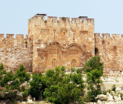 H Χρυσή Πύλη, την πιο αρχαία πύλη της Ιερουσαλήμ. Από αυτή πέρασε ο Χριστός πάνω στο γαϊδουράκι κατά την είσοδό του στα Ιεροσόλυμα, όπως και ο αυτοκράτορας Ηράκλειος μεταφέροντας τον Τίμιο Σταυρό το 629 από τους Πέρσες.