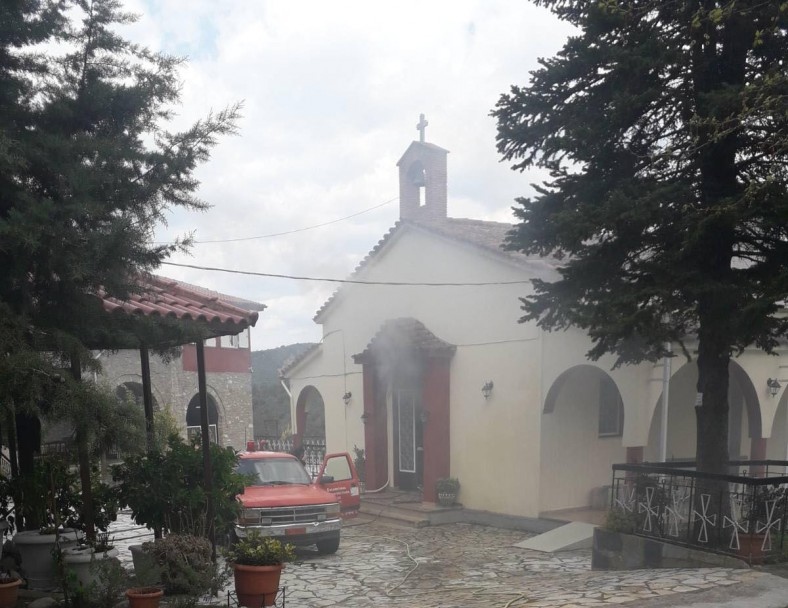 Μεγάλη κινητοποίηση της Πυροσβεστικής προκάλεσε η φωτιά στην Ιερα Μονή Παναγίας της Κατερινούς, στη Γαβαλoύ.