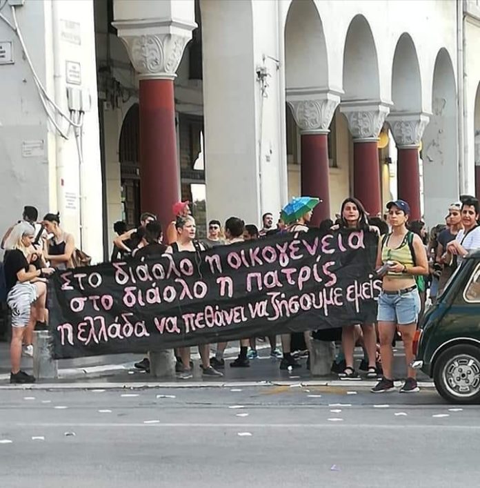 Απαθανατίζει μια ομάδα νέων ανθρώπων που συμμετείχαν στο gay pride της Θεσσαλονίκης να προμοτάρει εθνομηδενιστικά σλόγκαν με επίκληση φυσικά στο βεελζεβούλ πατέρα τους !!!