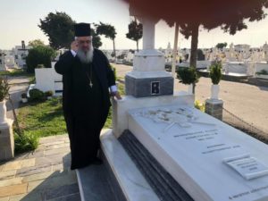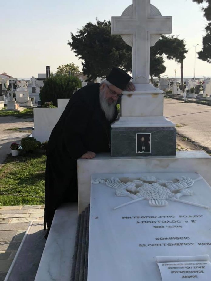 Γι΄αυτό και το πρώτο μου μέλημα σήμερα, με το πέρας της Θ. Ευχαριστίας ήταν να μεταβώ στο Κοιμητήριο των Ταξιαρχών Ρόδου, συνοδευόμενος από 8 πνευματικά μου αναστήματα και να τελέσω Τρισάγιον υπέρ Αναπαύσεως της ψυχής του ΑΠΟΣΤΟΛΟΥ ΑΡΧΙΕΡΕΩΣ, ως ελάχιστον φόρον τιμής ανθ’ ώνπερ παρ’ Αυτού απήλαυσα.