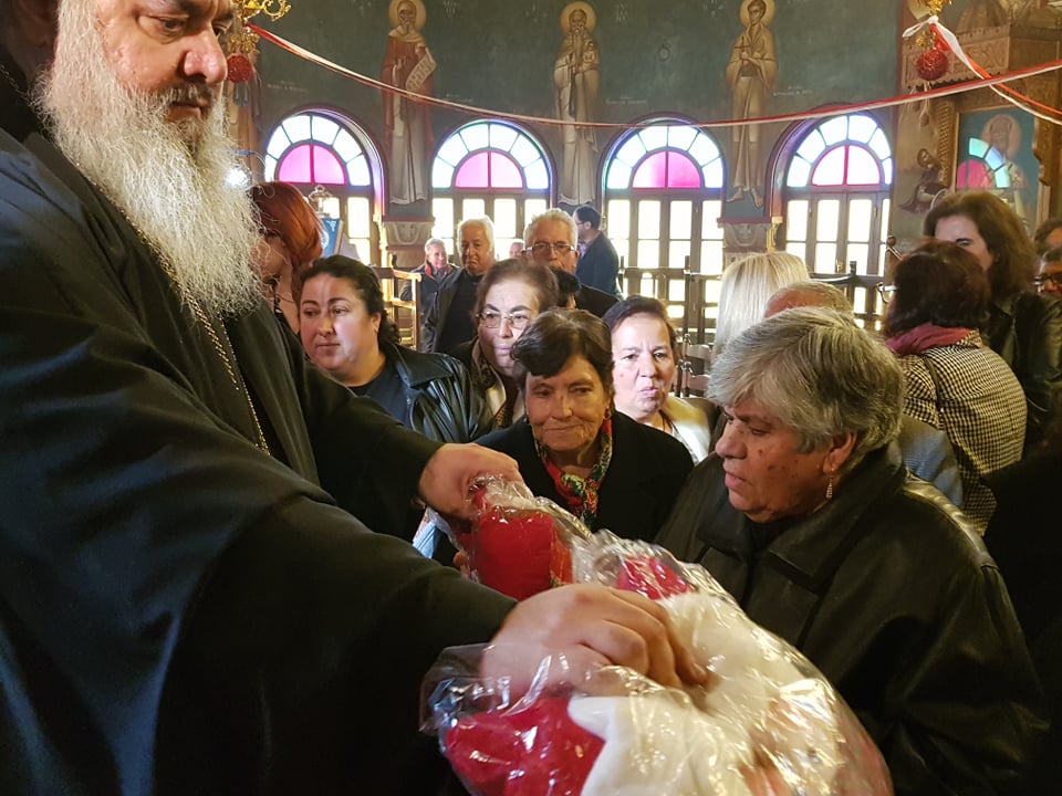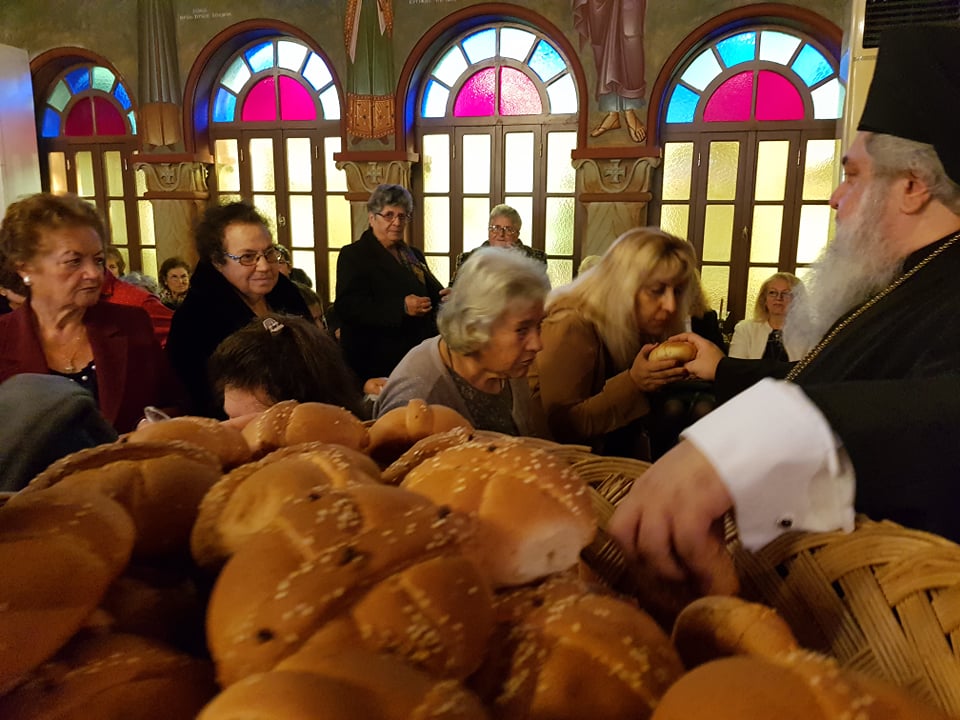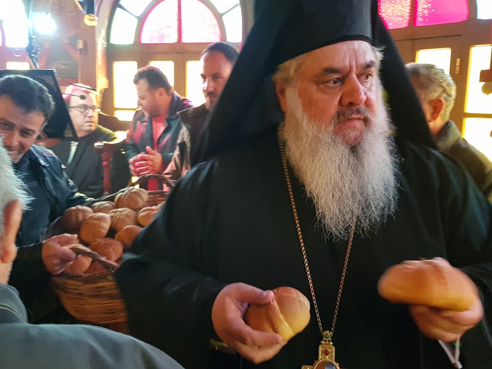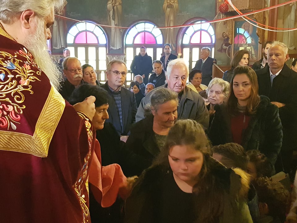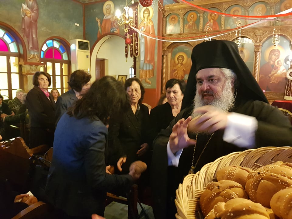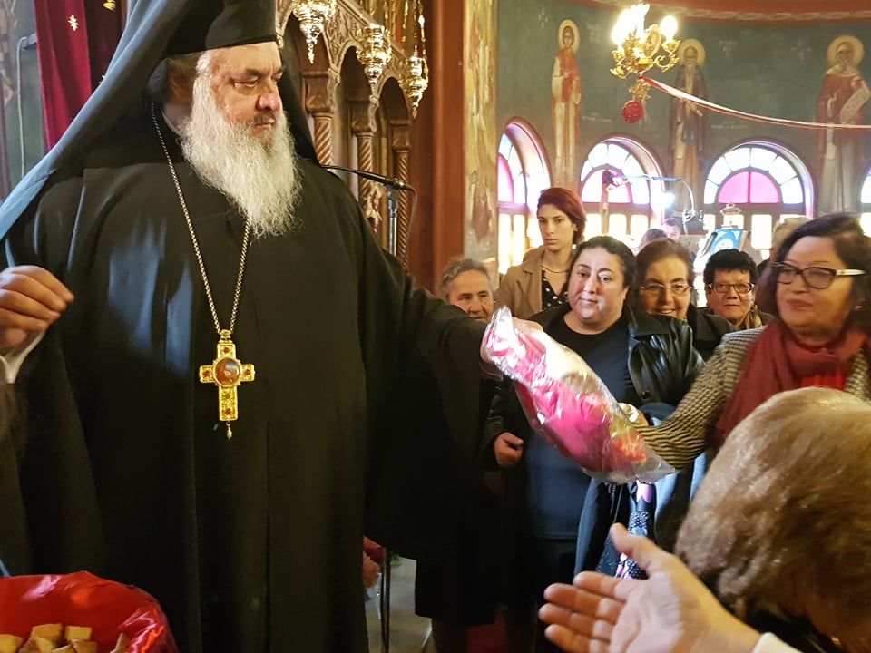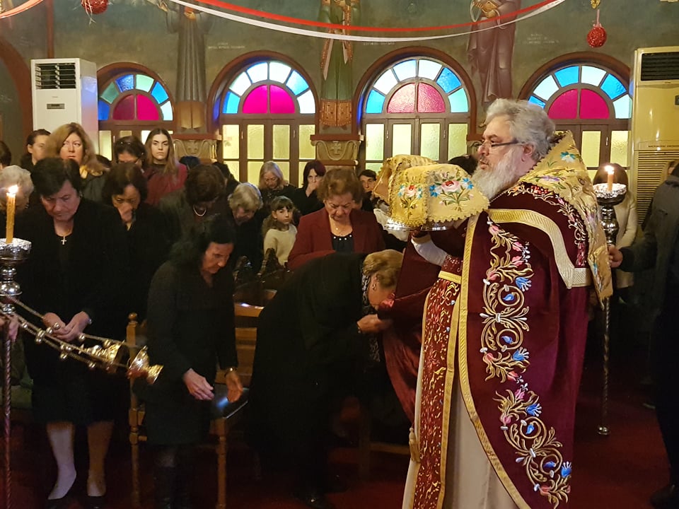 Μετά το πέρας της Θ. Λειτουργίας, αφού ευλόγησε τα Χριστόψωμα κατά το έθος, τα μοίρασε στον καθένα ξεχωριστά, «Άδοντες και ψάλλοντες εν τη καρδία, ο ποιμένας και οι ποιμενόμενοι, Ἡ γέννησίς σου Χριστὲ ὁ Θεὸς ἡμῶν, ἀνέτειλε τῷ κόσμῳ, τὸ φῶς τὸ τῆς γνώσεως, ἐν αὐτῇ γὰρ οἱ τοῖς ἄστροις λατρεύοντες, ὑπὸ ἀστέρος ἐδιδάσκοντο, σὲ προσκυνεῖν, τὸν Ἥλιον τῆς δικαιοσύνης, καὶ σὲ γινώσκειν ἐξ ὕψους ἀνατολήν, Κύριε δόξα σοι ! »