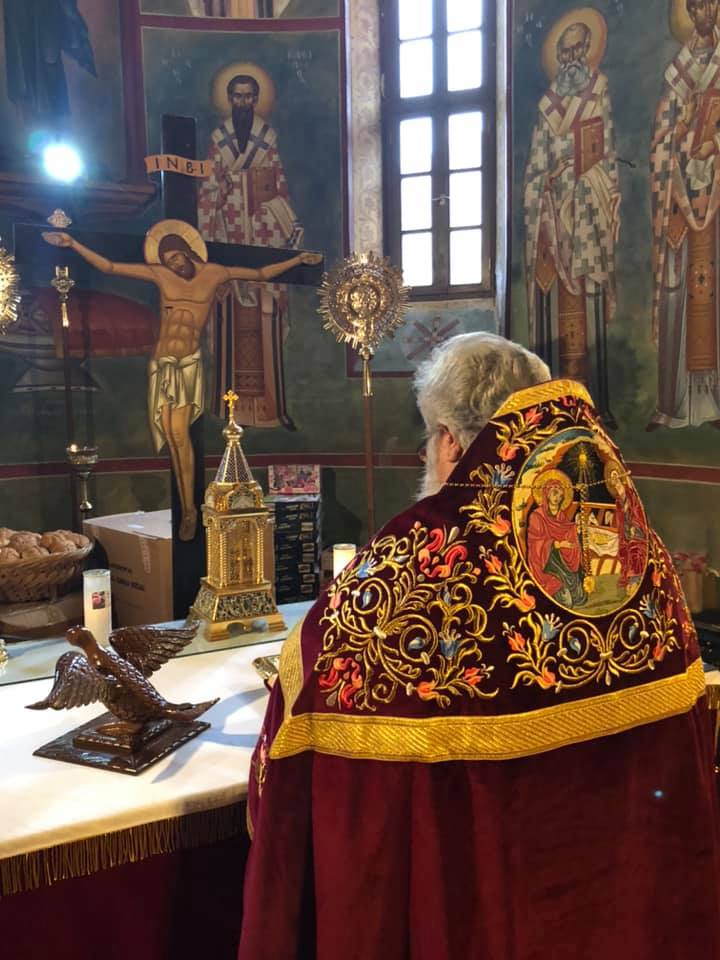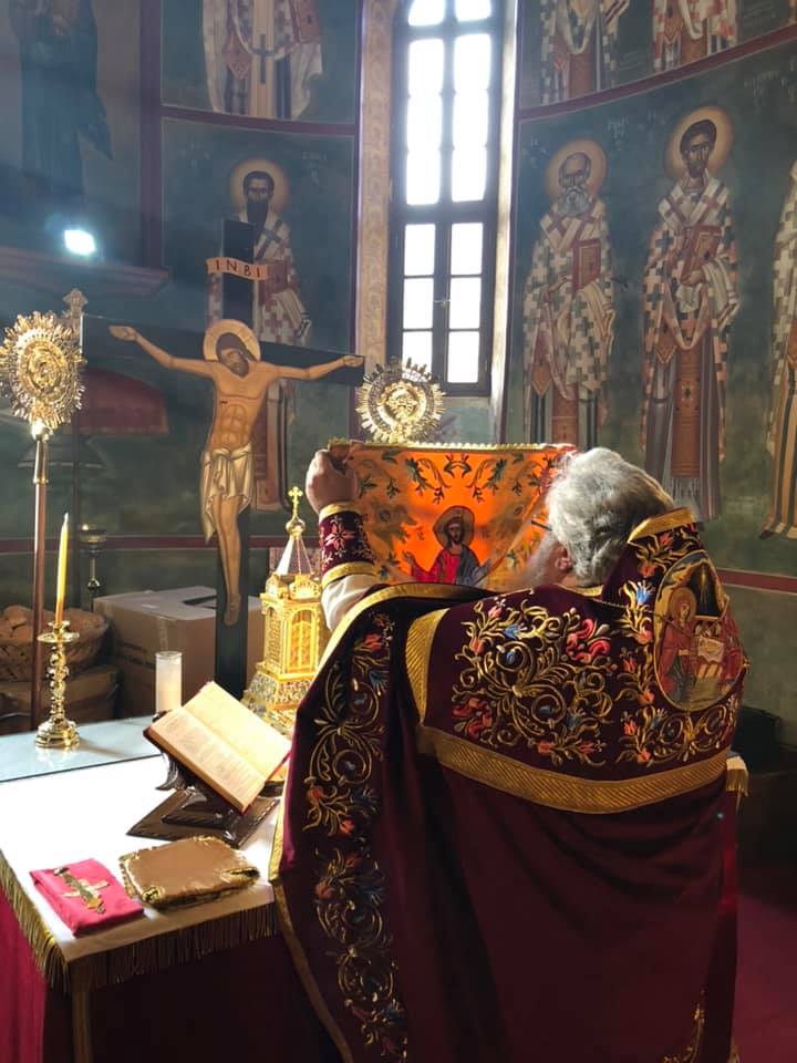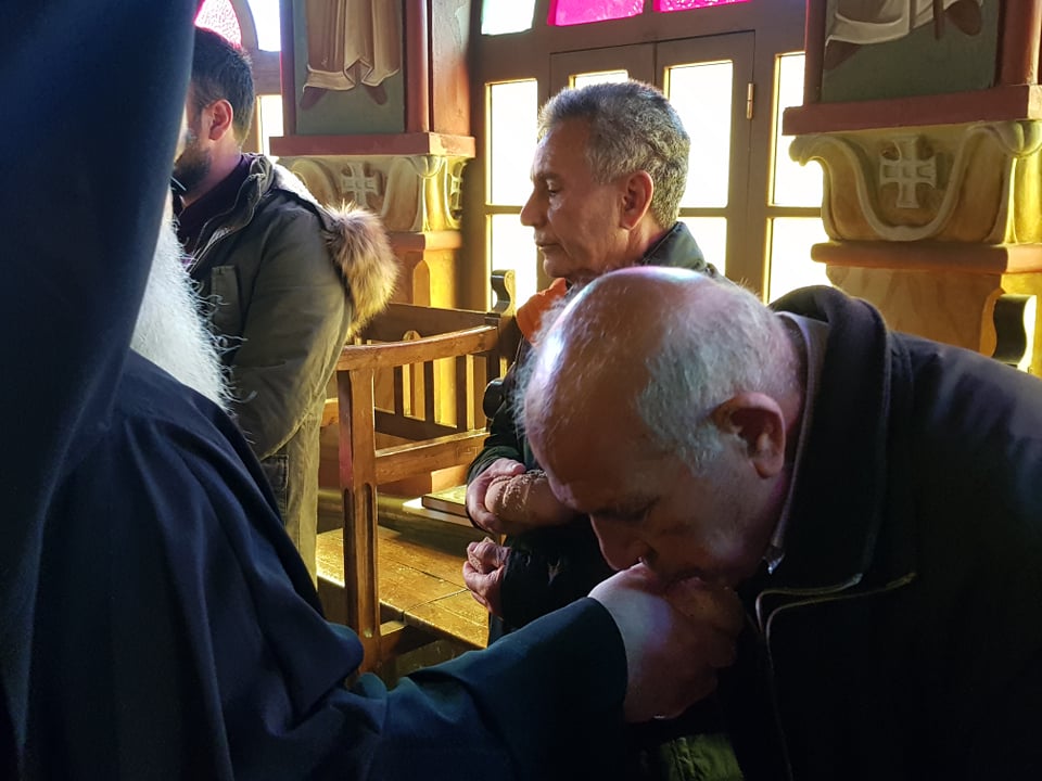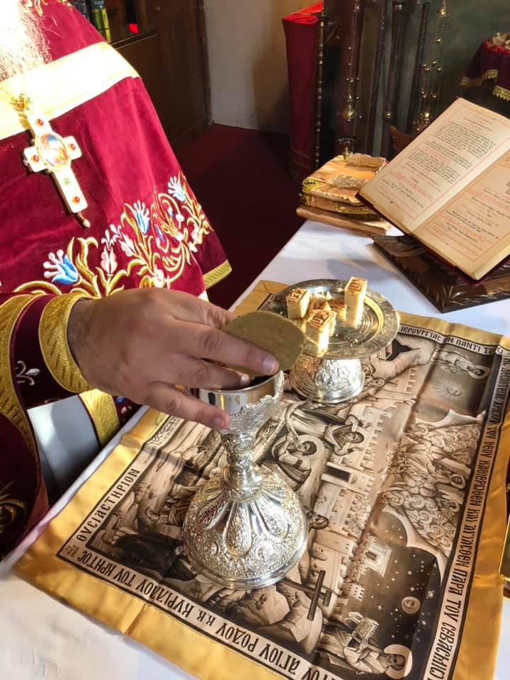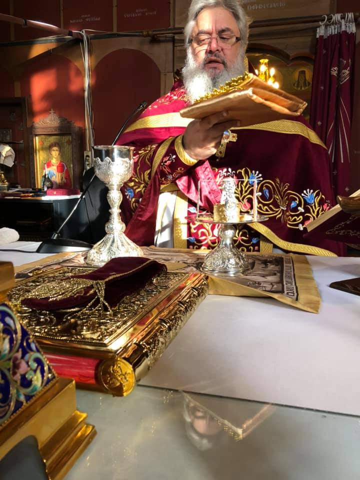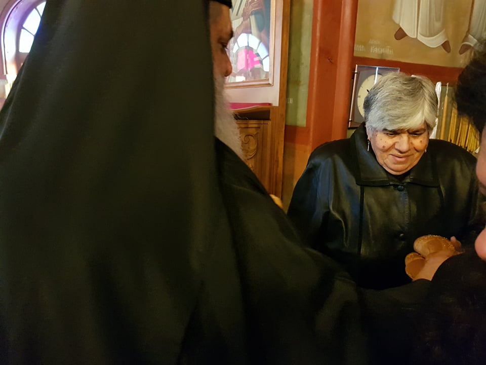 Μετά το πέρας της Θ. Λειτουργίας, αφού ευλόγησε τα Χριστόψωμα κατά το έθος, τα μοίρασε στον καθένα ξεχωριστά, «Άδοντες και ψάλλοντες εν τη καρδία, ο ποιμένας και οι ποιμενόμενοι, Ἡ γέννησίς σου Χριστὲ ὁ Θεὸς ἡμῶν, ἀνέτειλε τῷ κόσμῳ, τὸ φῶς τὸ τῆς γνώσεως, ἐν αὐτῇ γὰρ οἱ τοῖς ἄστροις λατρεύοντες, ὑπὸ ἀστέρος ἐδιδάσκοντο, σὲ προσκυνεῖν, τὸν Ἥλιον τῆς δικαιοσύνης, καὶ σὲ γινώσκειν ἐξ ὕψους ἀνατολήν, Κύριε δόξα σοι ! »