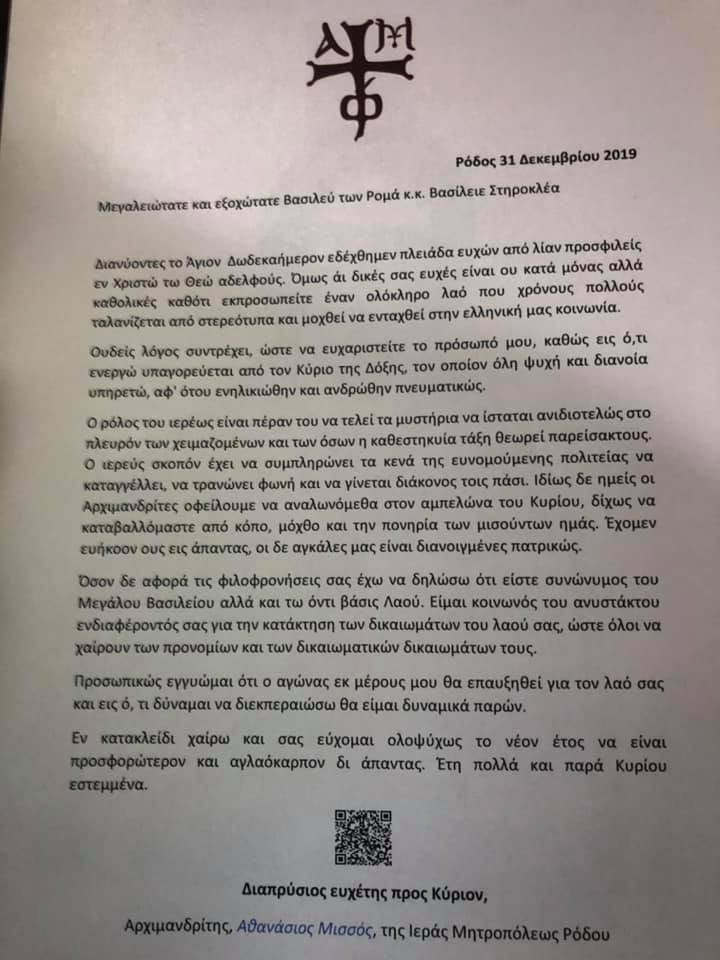 Διανύοντες το Άγιον Δωδεκαήμερον εδέχθημεν πλειάδα ευχών από λίαν προσφιλείς εν Χριστώ τω Θεώ αδελφούς. Όμως άι δικές σας ευχές είναι ου κατά μόνας αλλά καθολικές καθότι εκπροσωπείτε έναν ολόκληρο λαό που χρόνους πολλούς ταλανίζεται από στερεότυπα και μοχθεί να ενταχθεί στην ελληνική μας κοινωνία.