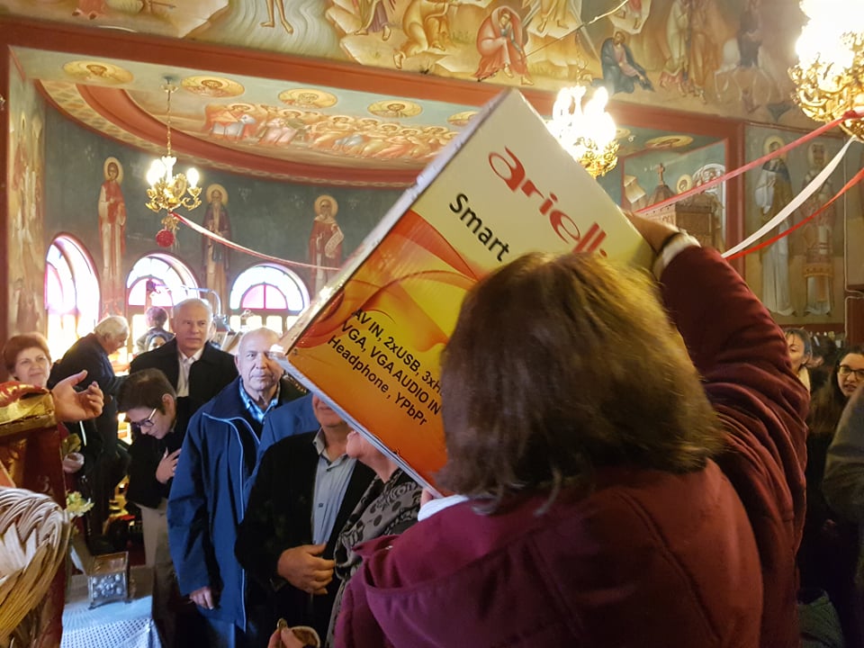 Με την πρόνοια του πατρός Αθανασίου, όλοι οι προσκυνητές έλαβαν από ένα Δωρεάν Λαχνό όπου κληρώθηκαν 4 Δώρα. Δυο Μηχανές ηλεκτρικές για παιδιά κάτω των 10 ετών και για τα παιδιά άνω των 10 ετών ένα Drone 15x15x4cm με κάμερα 300.000 PIXELS και για τους μεγάλους μια Τηλεόραση 32′ ίντσες.