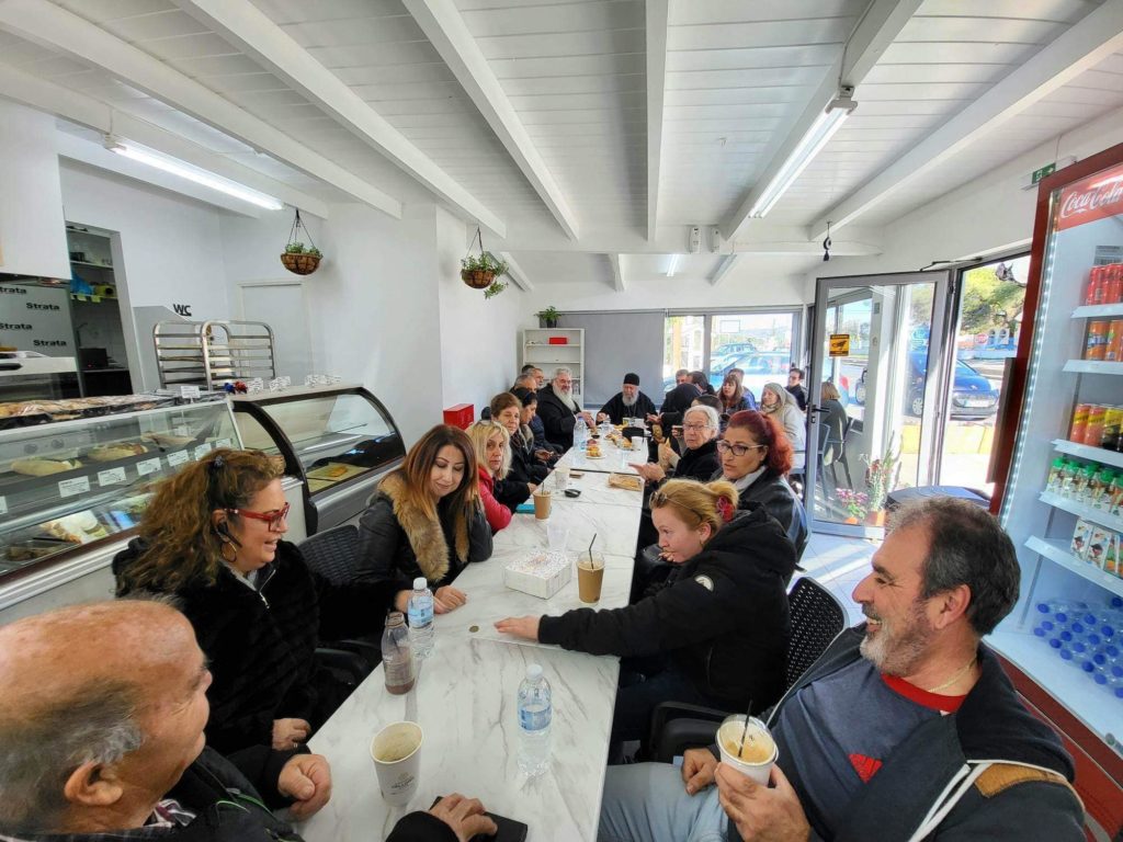 Στο τέλος, προσέφερα το πρωϊνό, τόσο στον Σεβασμιώτατο όσο και σε όλους τους ακόλουθους, στην Καφετέρια “Στράτα” μια και ο Ι. Ναός δεν διαθέτει αίθουσες κλπ.