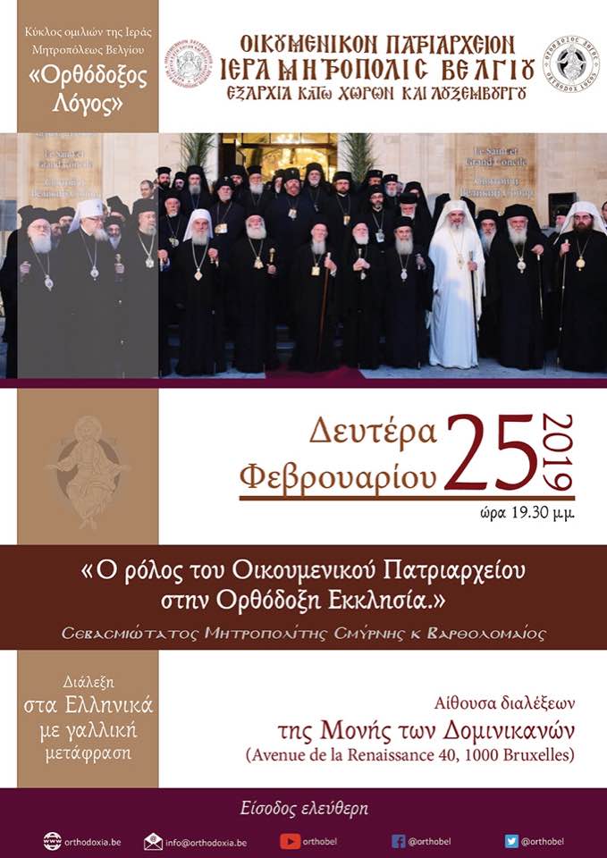 Στη αίθουσα διαλέξεων της Μονής Δομινικανών, ομιλητής ο Σεβασμιώτατος Μητροπολίτης Σμύρνης κ.κ. Βαρθολομαίος. Διάλεξη στα Ελληνικά με Γαλλική μετάφραση.