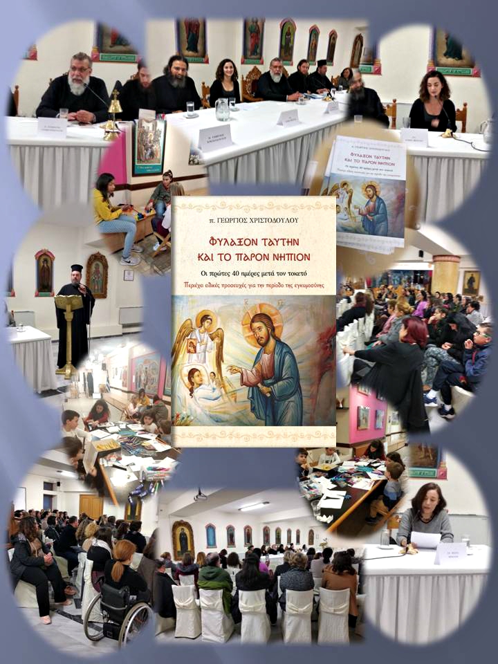 Ο συγγραφέας του βιβλίου π. Γεώργιος Χριστοδούλου λαμβάνοντας τελευταίος τον λόγο, ανέφερε το πόσο σημαντικό είναι για την υγεία της μητέρας και του βρέφους να διαβάζονται οι συγκεκριμένες ακολουθίες που με τόση αγάπη και φροντίδα προσφέρει η Αγία μας Εκκλησία για την τόσο ευαίσθητη περίοδο των σαράντα ημερών μετά τον τοκετό.