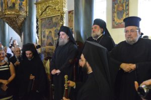 Ο νέος ηγούμενος Ερυθρών κ. Κύριλλος μέσα σε μια ασφυκτικά γεμάτη εκκλησία συγκινημένος, ευχαρίστησε τον Οικουμενικό μας Πατριάρχη και την Αγία και Ιερά Σύνοδο και ανέλαβε να συνεχίσει με ένθεο ζήλο το έργο των προκατόχων του.