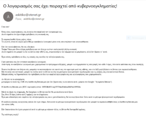 Ειδικότερα άγνωστοι δράστες με τη χρήση απατηλών λογαριασμών ηλεκτρονικού ταχυδρομείου, στέλνουν μαζικά μηνύματα σε αποδέκτες και τους ενημερώνουν ότι διαθέτουν πρόσβαση στη συσκευή τους και το μήνυμα έχει αποσταλεί από τον προσωπικό τους λογαριασμό.