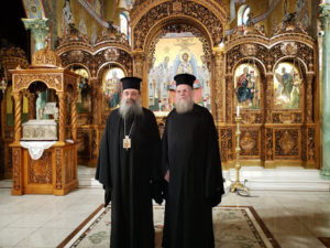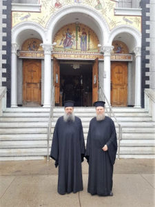 Ο Σεβασμιώτατος Μητροπολίτης Πατρών κ.κ. Χρυσόστομος (στην Ιερά Πατριαρχική Μονή την Παρασκευή 21 Ιουνίου 2019) και ο Θεοφιλέστατος Επίσκοπος Ευκαρπίας κ. Ιερόθεος,