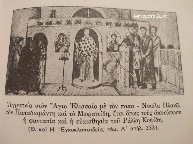 Κάποιο Σαββατόβραδο του 1891,πήγε για πρώτη φορά ο Αλέξανδρος Παπαδιαμάντης σε αγρυπνία στον Άγιο Ελισσαίο. Είχε συστάσεις από τον πατέρα Νήμφωνα ότι εκεί τελούνταν οι καλύτερες αγρυπνίες με το παλιό, ορθόδοξο αγιορείτικο τυπικό.
