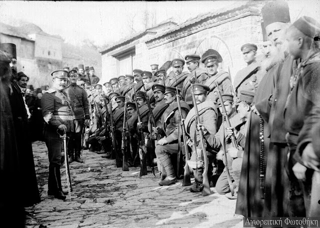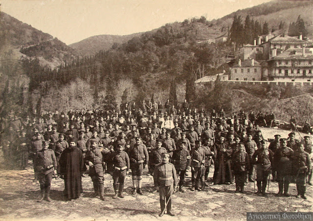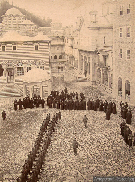 Ιερολοχίτες μοναχοί του Αγίου Όρους με χωροφύλακες.