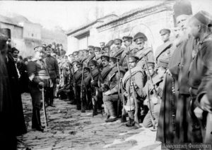 Βούλγαροι στρατιώτες, με αξιωματικό τον Γεώργιο Tsvetinov, στις Καρυές (Νοέμβριος/Δεκέμβριος 1912)