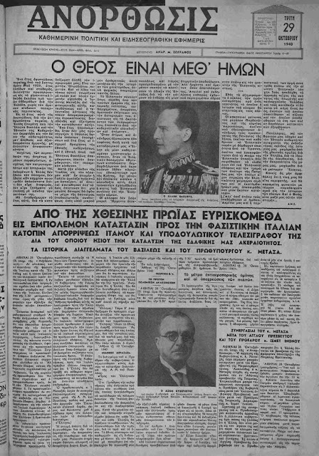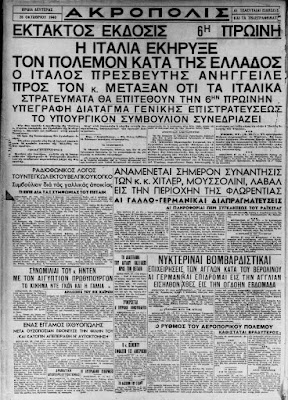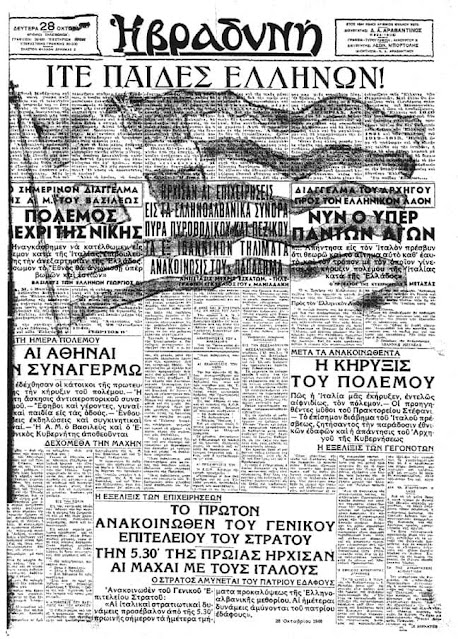 Το βροντερό “ΟΧΙ” των Ελλήνων στις 28 Οκτωβρίου 1940 – Δείτε τα πρωτοσέλιδα των εφημερίδων (28 Οκτωβρίου | 29 Οκτωβρίου) της εποχής, έναρξη ελληνοϊταλικού πολέμου.