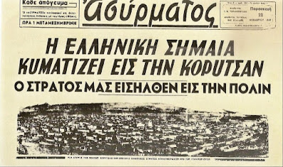 Σημαίες ελληνικές βγήκαν από τα σεντούκια των γιαγιάδων, κυμάτιζαν στους δρόμους, στα σπίτια, στα δένδρα, στα καμπαναριά.