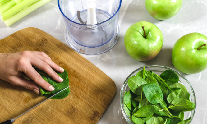 Το ίδιο αποτέλεσμα θα έχει και το κόψιμο του σπανακιού σε λεπτές λωρίδες και ύστερα η πολτοποίησή του για να το προσθέσουμε (πάντα ωμό) σε σαλάτες και σάντουϊτς, καταλήγει.
