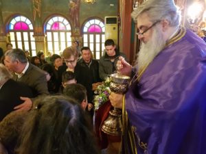 Στον κατάμεστο Ιερό Ιδρυματικό Ναό του Αγίου Τρύφωνος του Κέντρου Κοινωνικής Πρόνοιας Περιφέρειας Νοτίου Αιγαίου – Παράρτημα Α.Μ.Ε.Α. Δομής Ενηλίκων, Κολύμπια Ρόδου τέλεσε την αναίμακτο Θυσία της Κυριακής της Σταυροπροσκυνήσεως 31 Μαρτίου 2019, ο Πανοσιολογιώτατος Αρχιμανδρίτης Αθανάσιος Μισσός, εμφανώς εξουθενωμένος εκ της λοίμωξης του αναπνευστικού που πέρασε. (Το Ιερό Θυσιαστήριο είναι η αναπνοή του και ποτέ δεν απουσιάζει)