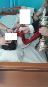 Με δάκρυα στα μάτια ο Γέροντας Αθανάσιος, αντευχόμενος στις αγνές αυτές ψυχούλες για την ΑΝΑΣΤΑΣΗ τους, τόσο των ίδιων που βρίσκονται μέσα στο Κρατικό Ίδρυμα για διάφορους λόγους, με την προτροπή των οικείων τους……. όσο και των ανθρώπων που μαστίζονται από ασθένειες, από κακουχίες, από φτώχεια, από τυραννίες κλπ. με τις πρεσβείες της Παναγίας μας.