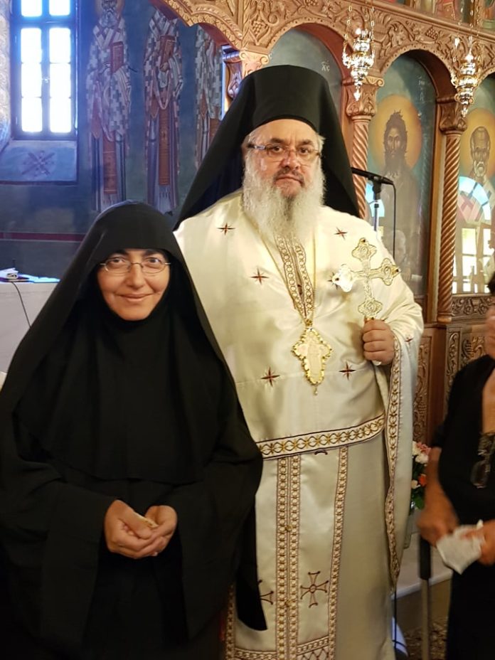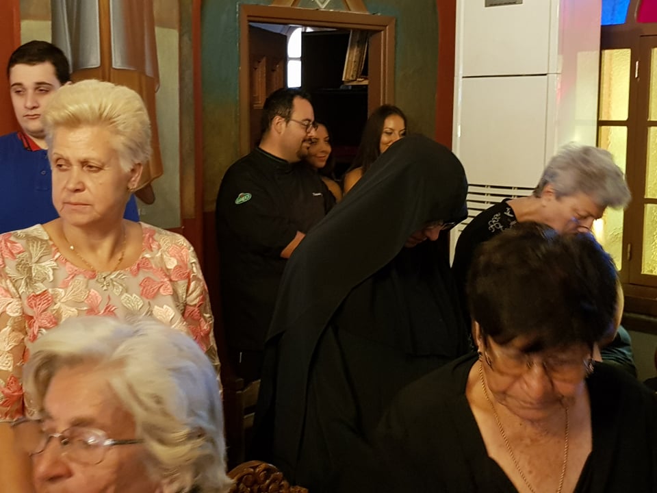 Συμπροσευχόμενη ήταν και η Γερόντισσα Σωφρονία Μοναχή από την Γυναικεία Κοινοβιακή Ιερά Μονή Αγίας Τριάδος, Ακράτας, ταπεινά, μεταξύ πλήθους κόσμου.