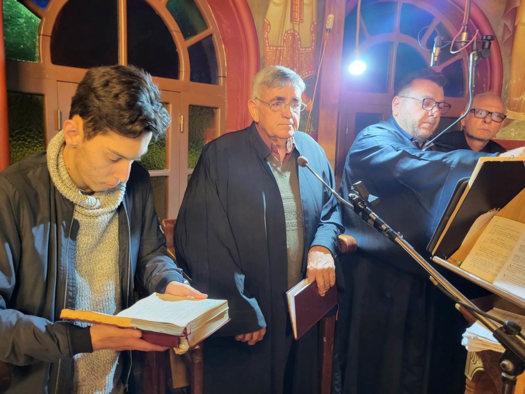 Προ της Ακολουθίας των Χαιρετισμών, ο Γέροντας Αθανάσιος, τέλεσε Τρισάγιο υπέρ μακαρίας μνήμης των αιφνιδίῳ θανάτῳ τελειωθέντων αδελφών ημών εις την Κοιλάδα των Τεμπών.