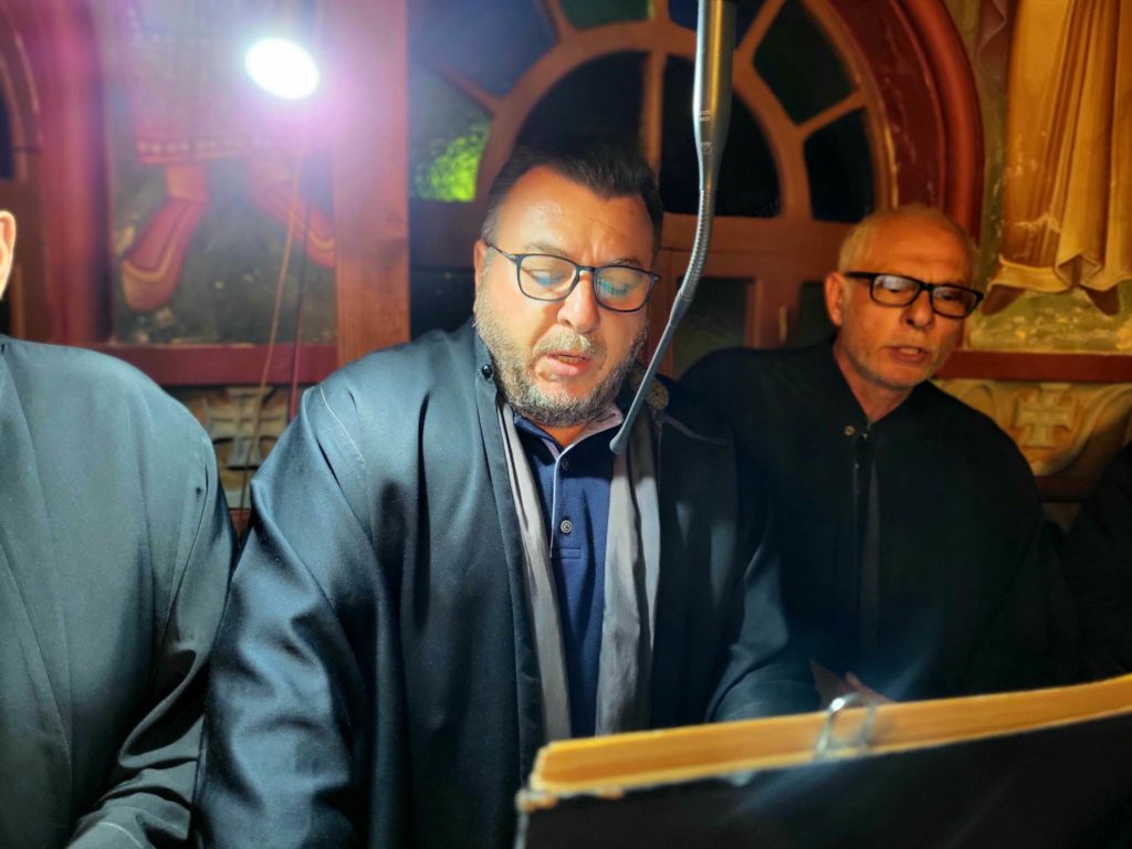 Στο Ιερό, διακονούσαν, κ. Μιχαήλ Διάκου, κ. Ιωάννης Τσακίρης, κ. Σακελλάρης Μαύρος, κ. Μιχαήλ Χρυσοβέργης.