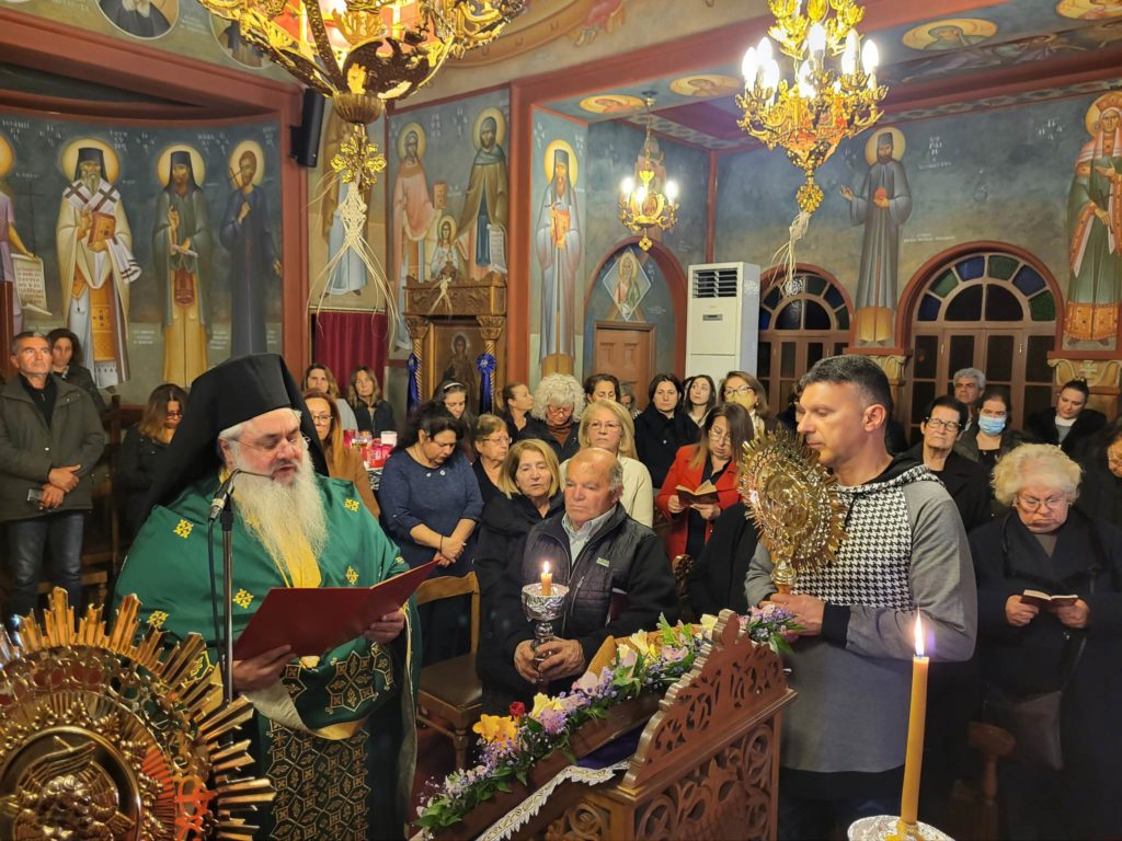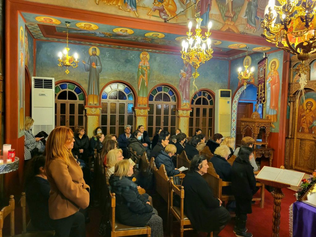 Σε κλίμα κατάνυξης τελέστηκε το απόγευμα της Παρασκευής, 17 Μαρτίου 2023, η Ακολουθία της Γ’ Στάσης των Χαιρετισμών προς την Υπεραγία Θεοτόκο, στον Ιερό Ιδρυματικό Ναό του Αγίου Τρύφωνος, του Κέντρου Κοινωνικής Πρόνοιας Περιφέρειας Νοτίου Αιγαίου – Παράρτημα Α.Μ.Ε.Α. Δομής Ενηλίκων, Κολύμπια Ρόδου, από τον Πανοσιολογιώτατο, Αρχιμανδρίτη, Αθανάσιο Μισσό, με Ψάλτες τους, κ. Τσαμπίκο Διακοσταματίου, κ. Παναγίωτη Πέρο, κ. Ελευθέριο Μπότση, κ. Πατούνα Τσαμπίκο και κ. Στέφανο τ. εκπαιδευτικό, με πλήθος κόσμου.