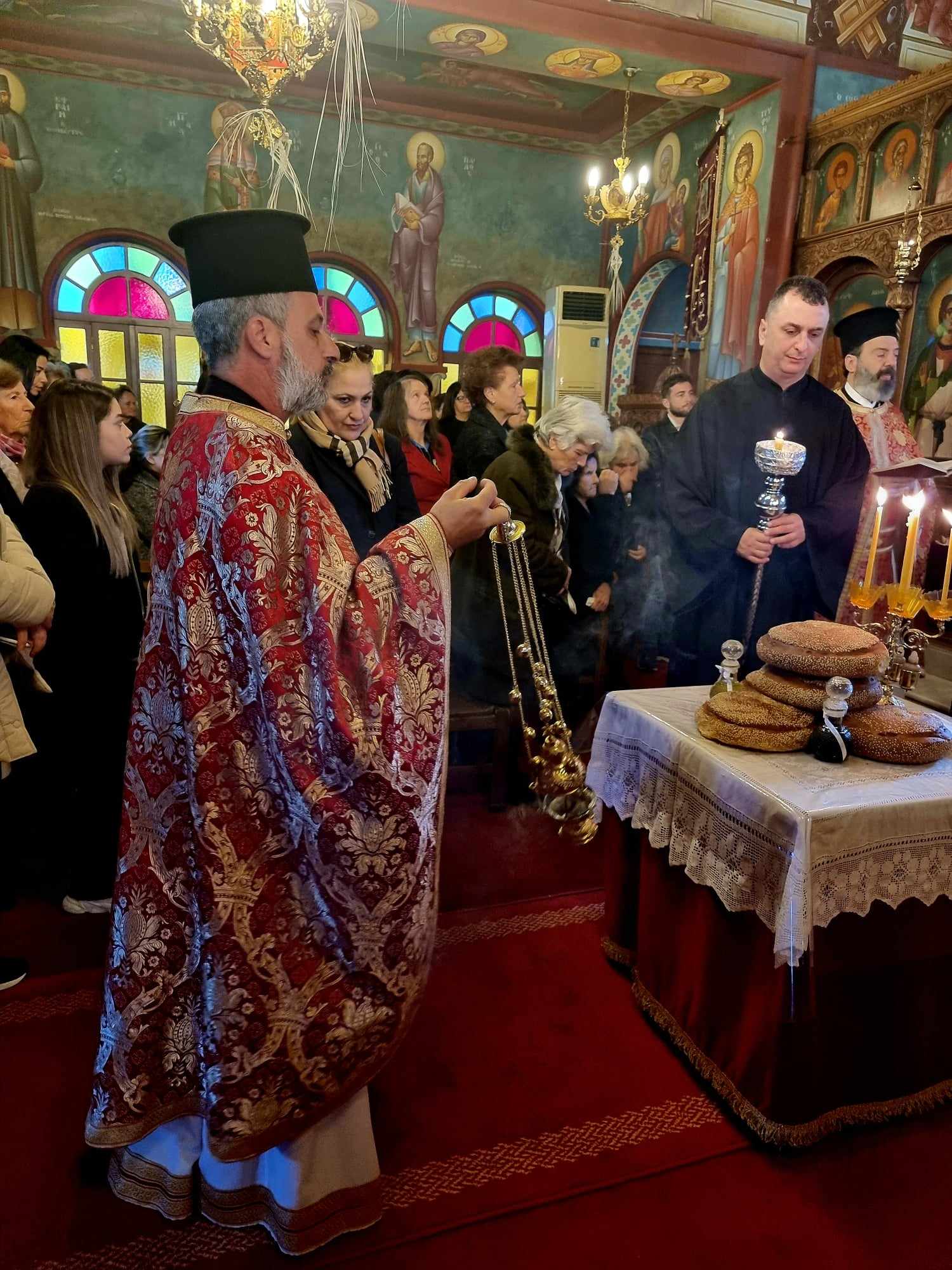 Στις 1/2/2024 και ώρα 7:30 τελέστηκε ο Όρθρος και η Πανηγυρική Θ. Λειτουργία με προεξάρχοντα τον Πρωτοσύγκελλο της Ι. Μητροπόλεως Ρόδου, Αρχιμανδρίτη, Θεωνά Καμπέρη, όπου κήρυξε και τον Θ. Λόγο, πλαισιούμενος από τους πατέρες Γρηγόριο και Γεώργιο Καρπαθάκη.