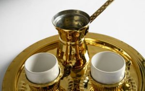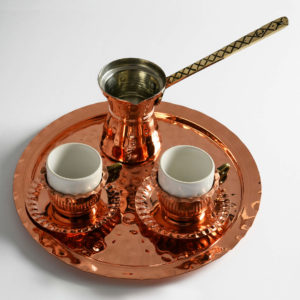 Δίσκος σερβιρίσματος σετ καφέ Ορείχαλκου χρυσό ή Χαλκού κοκκινωπό ! Περιέχει, Δίσκο σερβιρίσματος, Μπρίκι, δυο φλυτζάνια καφέ. Ελληνικές κατασκευές.