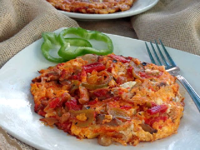 Τα ρίχνουμε πάνω από τα λαχανικά κουνώντας το τηγανάκι μας πέρα δώθε [δέν ανακατεύουμε μην διαλυθεί η ομελέτα μας].