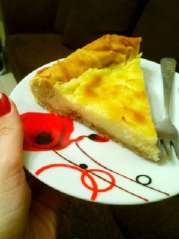9) Αδειάζουμε την κρέμα στην ταρτιέρα και κλείνουμε τα φύλλα γύρω γύρω. Ψήνουμε για 50 λεπτά με 1 ώρα και αφήνουμε να κρυώσει καλά.