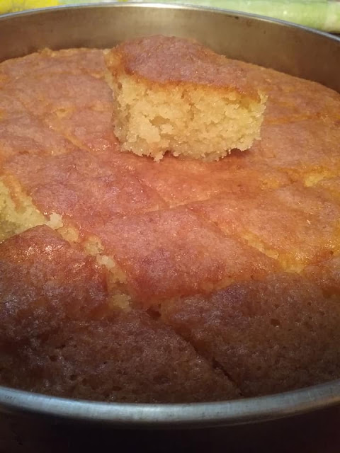 Αφού ψηθεί το γλυκό το αφήνουμε έξω για 5 λεπτάκια και το σιροπιάζομαι με προσοχή με καυτό το σιρόπι σιγά σιγά με την κουτάλα έτσι ώστε να πάει παντού αλλά να μην χαλάσουμε την επιφάνειά του.