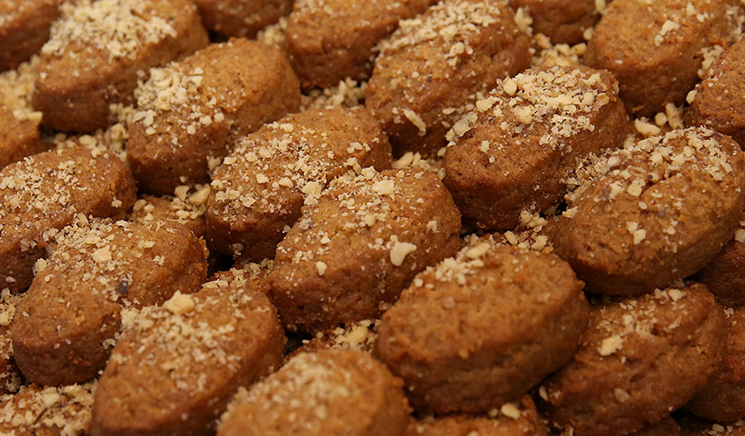 καρύδι περασμένο στο μούλτι για πασπάλισμα από πάνω.