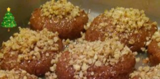 Πασπαλίζω με μπόλικο καρύδι και μελώνω