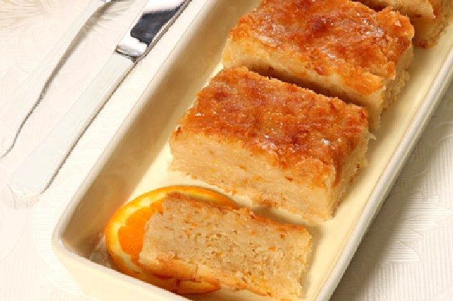 Αποσύρουμε και το αφήνουμε να κρυώσει λίγο. Βγάζουμε την πορτοκαλόπιτα από το φούρνο και την τρυπάμε ελαφρώς με ένα πιρούνι σε όλη της την επιφάνεια.