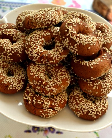 Τα πασπαλίζουμε με το σουσάμι και ψήνουμε σε προθερμασμένο φούρνο στους 180°C για 15 λεπτά.