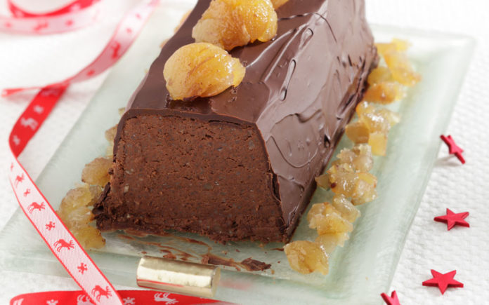 Ένα γλυκό σκέτος πειρασμός με γεύση κάστανο και σοκολάτα χωρίς παντεσπάνι! Γαρνίρετε με κάστανα γλασέ!