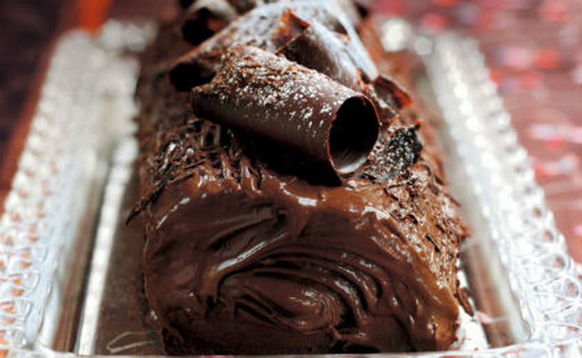 Πασπαλίζετε ελαφρά με ζάχαρη άχνη και διακοσμείτε με φύλλα γκι και ου ή με άλλη διακόσμηση της επιλογής σας. Αφήνετε το ρολό να «σφίξει» για μερικές ώρες πριν το κόψετε σε φέτες και το σερβίρετε.