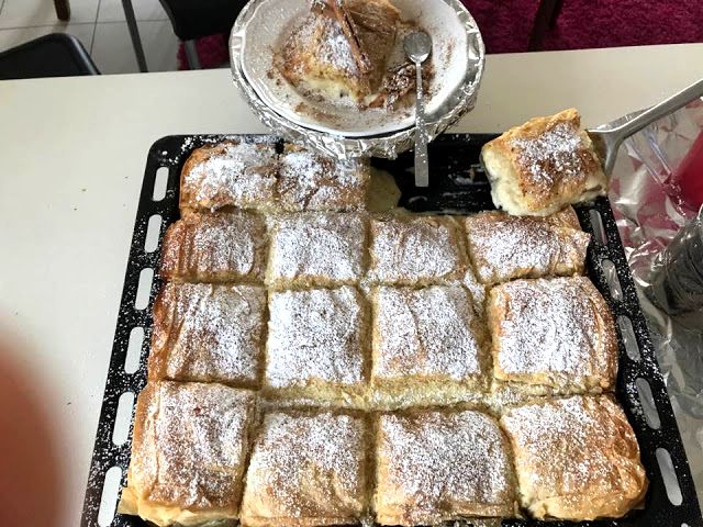Τέλος κόβουμε σε τετράγωνα κομμάτια και ψήνουμε στους 150 βαθμούς μέχρι να ροδίσουν τα φύλλα 30 με 40 λεπτά Καλή επιτυχία σε όσους την δοκιμάσουν !