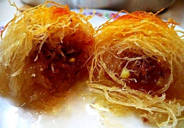 Ανοίγω το καταίφι και το χωρίζω όλο σε λωρίδες, κόβω εκεί που είναι διπλωμένο το καταίφι από την μια και από την άλλη πλευρά τα καταιφάκια όχι πολύ σφιχτά.