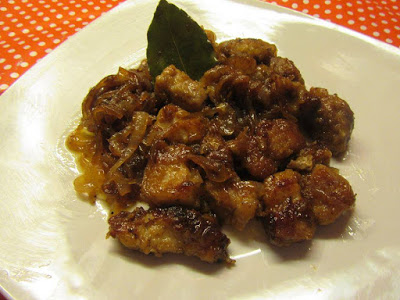 Σε ένα άλλο τηγάνι προσθέστε το υπόλοιπο Βιτάμ και αφού το έχετε κόψει το κρέας σε μικρές μπουκίτσες το αλευρώνεται και το σοτάρεται μέχρι να πάρει σκούρο χρώμα .