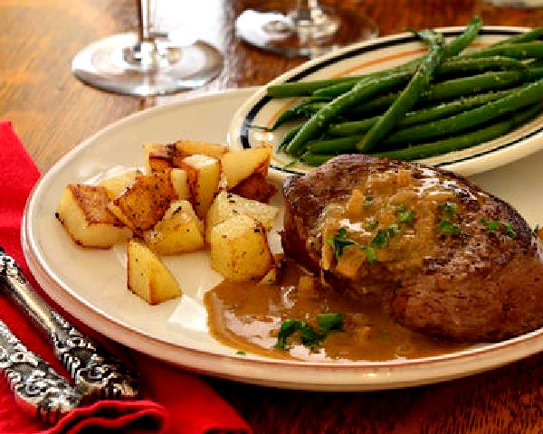 Σερβίρετε τα φιλέτα ή τις μπριζόλες σας, τα περιχύνετε με τη πικάντικη σάλτσα και τα συνοδεύετε με πατάτες φούρνου.