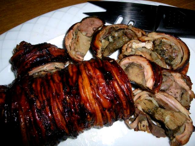 13.Μόλις περάσουμε όλα τα κομμάτια στη σούβλα, πρέπει να καλύψουμε τη συκωταριά με τις χορδές :