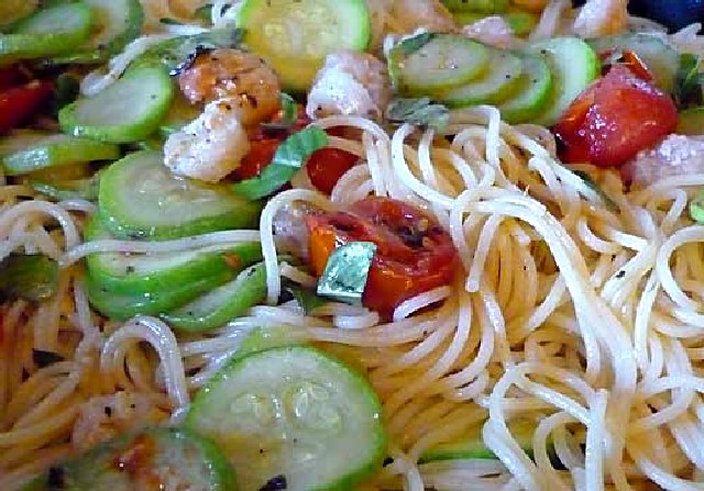 Τα λιγκουίνι με γαρίδες και κολοκυθάκια είναι έτοιμα. Καλή μας όρεξη…