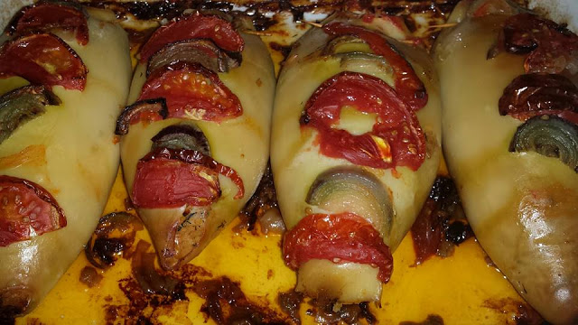 Ψήνουμε σε προθερμασμένο φούρνο με λίγο νεράκι μέχρι να τσιμπήσουμε με το πιρούνι και να είναι μαλακά περίπου 30 με 40 λεπτά 180 βαθμούς αέρα.