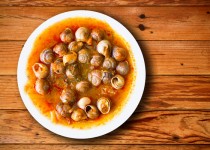 Πλένουμε τα σαλιγκάρια καλά και τα βράζουμε σε αλατισμένο νερό για 30 λεπτά.Τα αποσύρουμε από την φωτιά και τα ξεπλένουμε με άφθονο νερό. Κόβουμε λίγο την πίσω άκρη από το κέλυφος. Σε μια κατσαρόλα βάζουμε να κάψει το λάδι και σοτάρουμε το κρεμμύδι με το σκόρδο.
