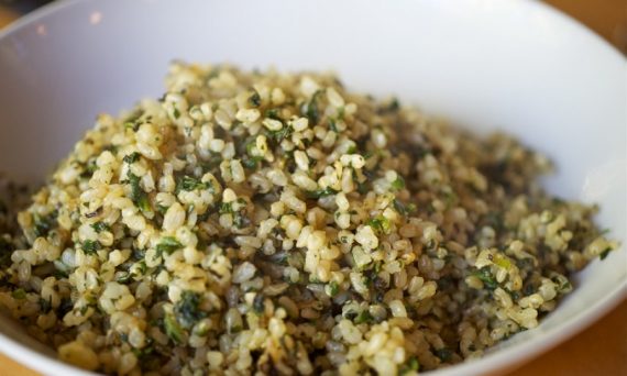 Αν έχουμε κρατήσει το ψιλοκομμένο φρέσκο κρεμμυδάκι, το προσθέτουμε 10 λεπτά μετά το ρύζι.