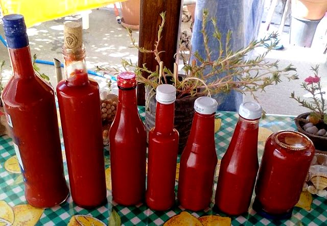 Οπως είναι ζεστή η ντομάτα την βάζω στα μπουκαλάκια κι όταν κρυώσει κλείνω κι έχουμε σπιτική κέτσαπ.