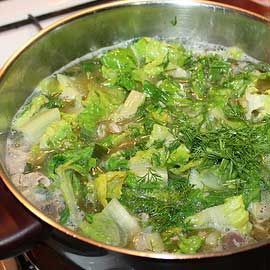 Ανοίγουμε την χύτρα και ρίχνουμε στο φαγητό τον άνηθο και το μαϊντανό.