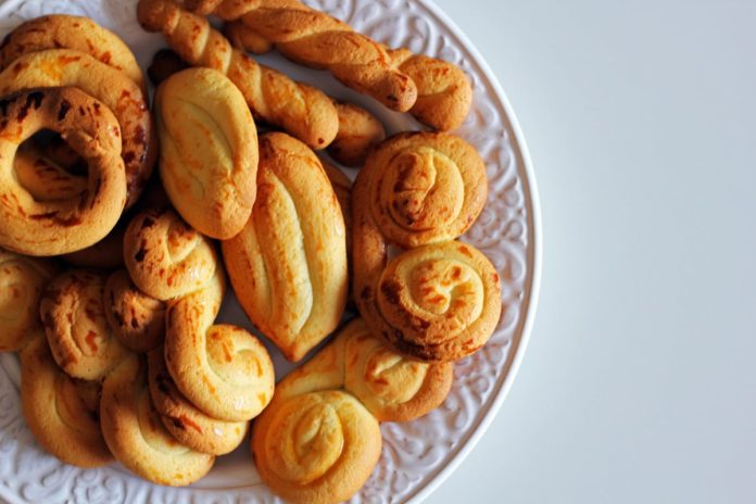Σε αλευρωμένη επιφάνεια πλάθετε κορδόνια με τη ζύμη μήκους 5 εκ. περίπου το καθένα. Βάζετε 3 κορδόνια κάθε φορά, το ένα δίπλα στο άλλο, και τα ενώνετε με τα δάκτυλά σας στις δύο άκρες. Κάνετε το ίδιο για να φτιάξετε και τα υπόλοιπα κουλουράκια.